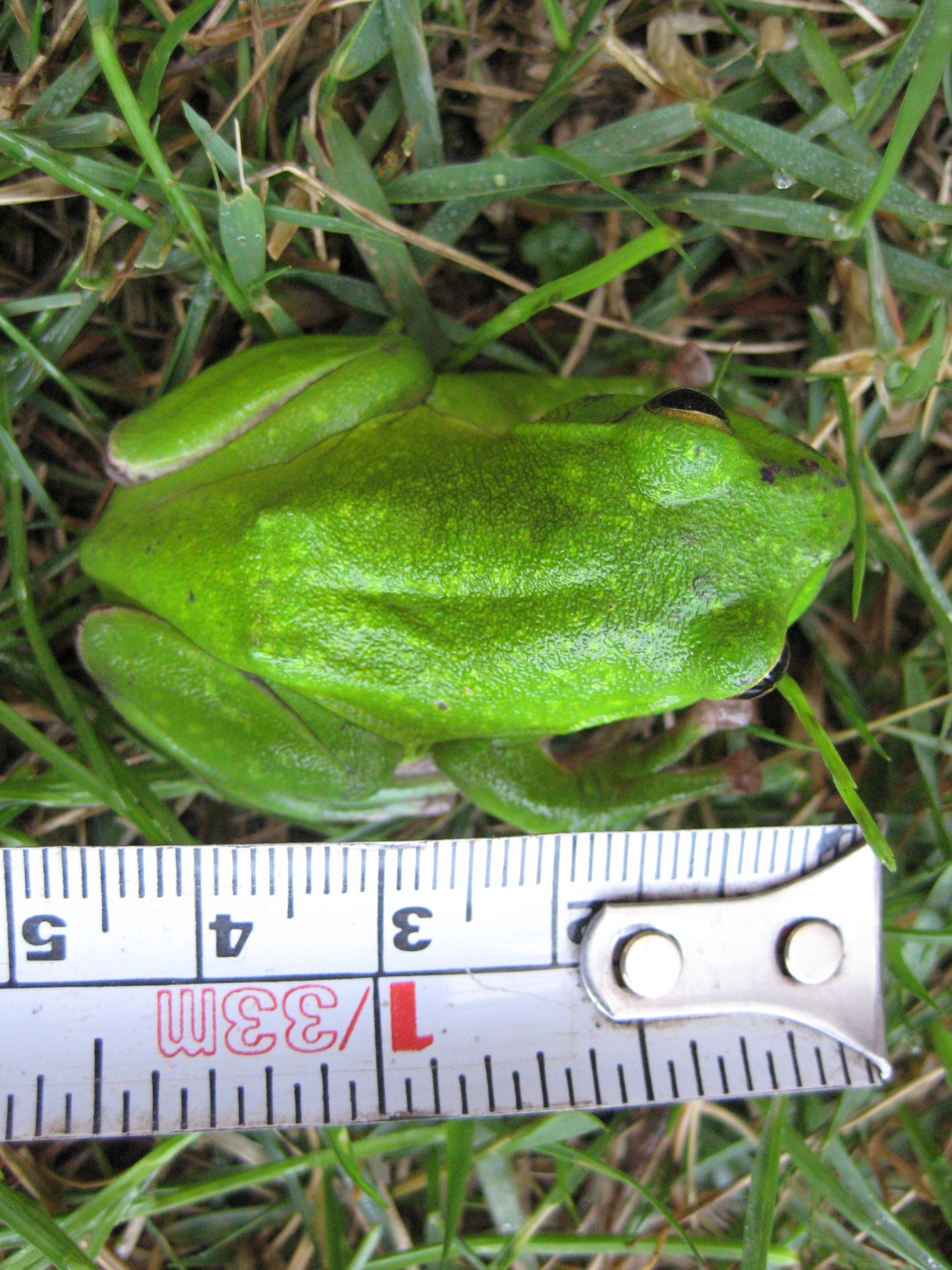[…] 小さな小さな、「シュレーゲルアオガエル」(だと思いますが、 合っていますか?)の子供が、ぴょんぴょんと跳ねて 山に帰るところに出会いました! 大きくなって、また田んぼに帰 […]