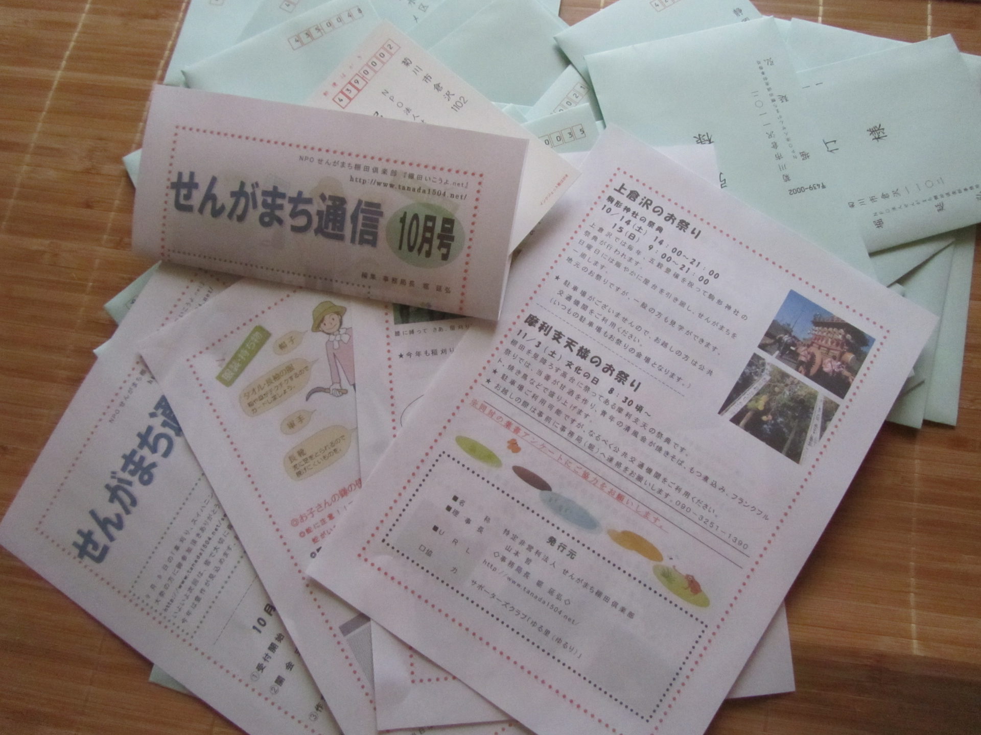 今日はせんがまち通信10月号を作成しオーナーさんに郵送しました。 10月の稲刈り、収穫祭の話題を中心に、これからの上倉沢の行事など 盛り沢山の内容?となっています。(^_^;)