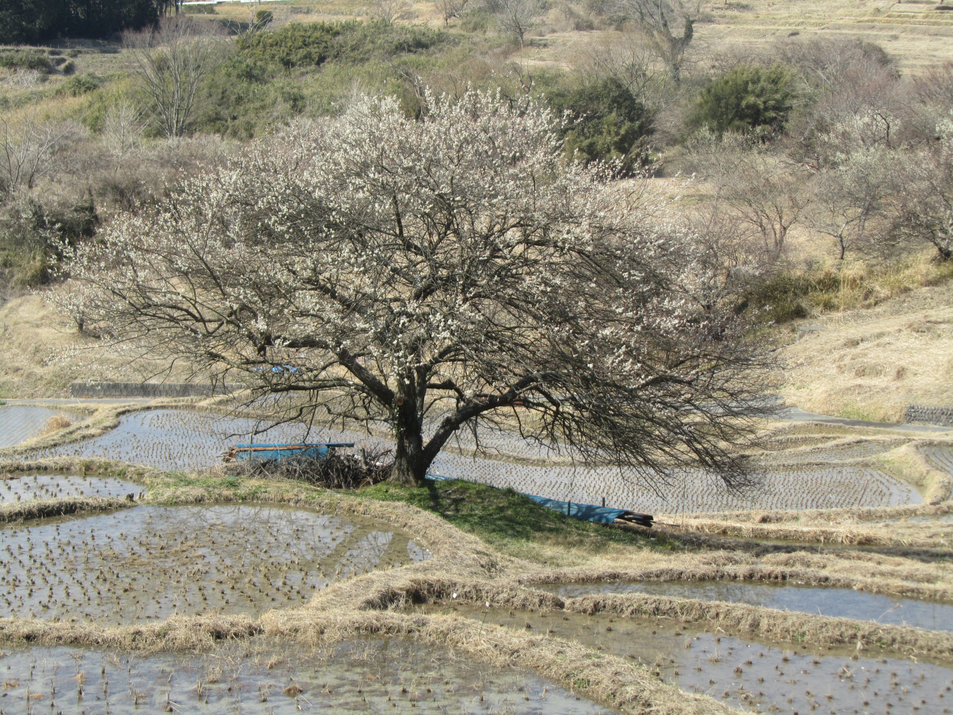 棚田シンボルツリーの梅がもうすぐ見ごろを迎えます。