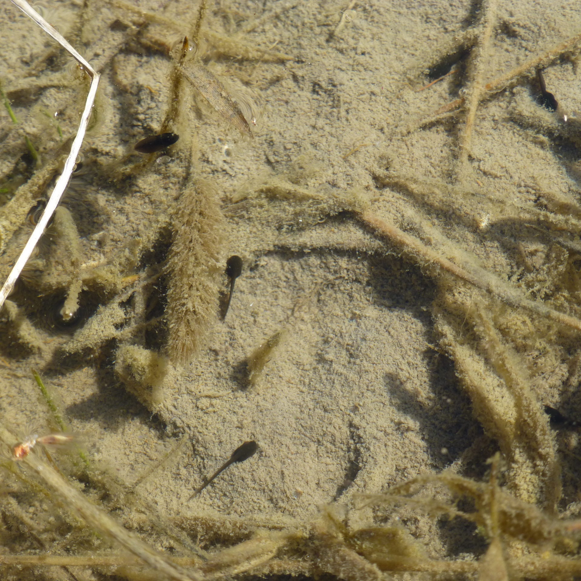 田んぼの中ではニホンアカガエルのオタマジャクシが泳ぎだし
