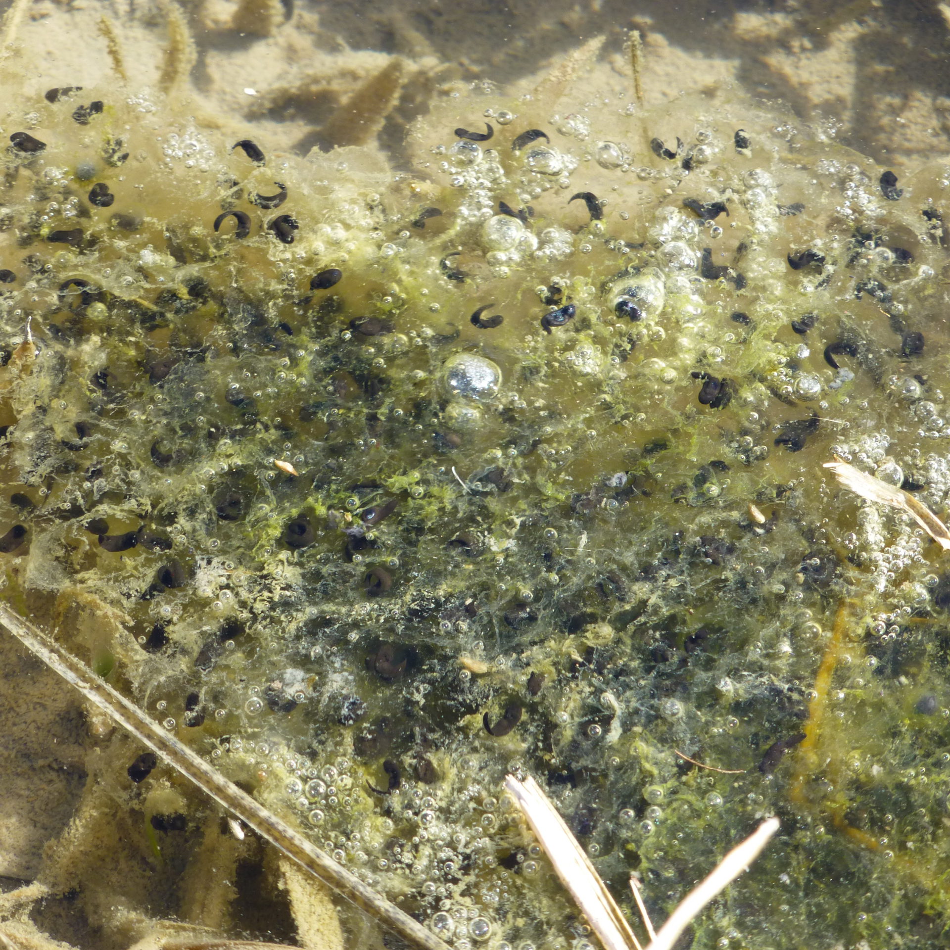 休憩時間にはニホンアカガエルの卵やオタマジャクシを見つけたりと