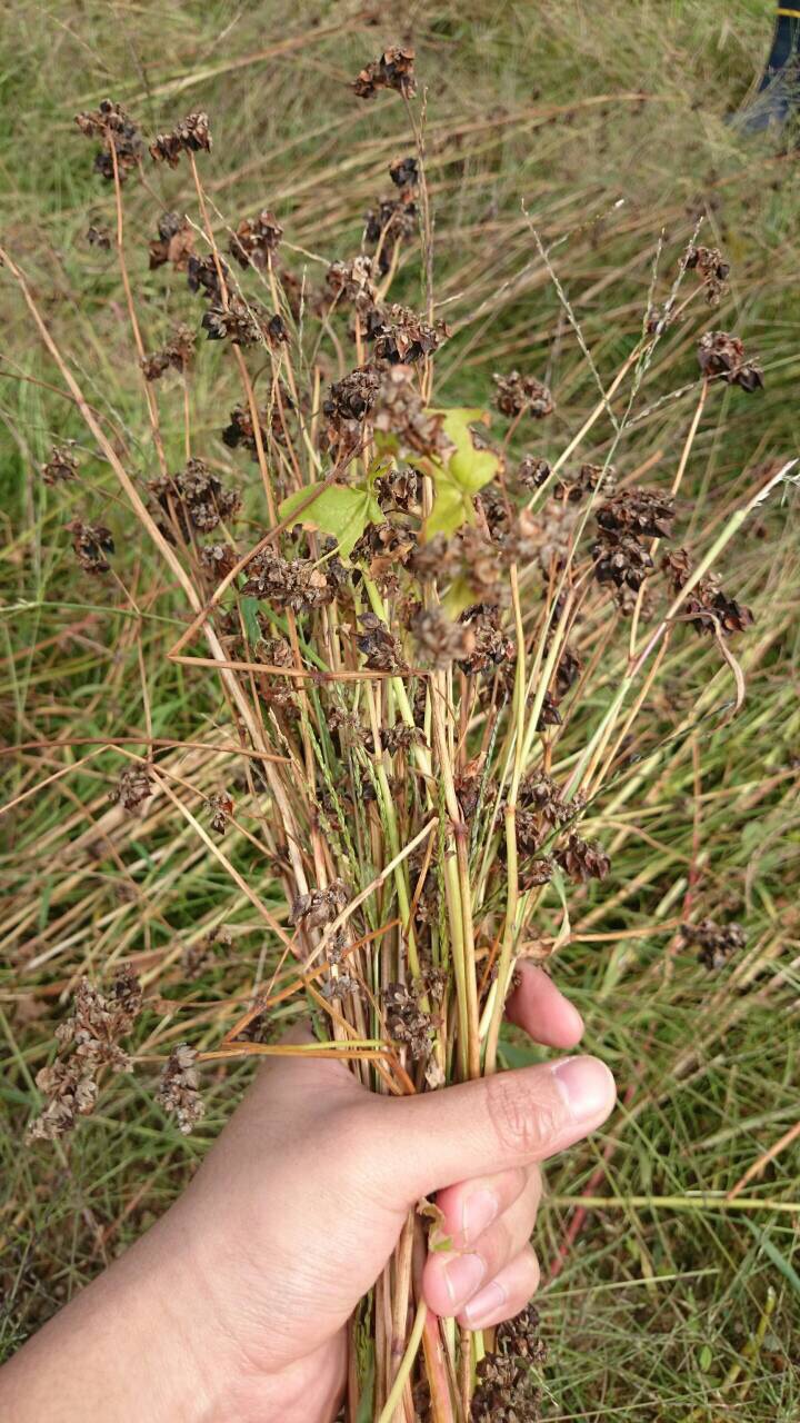 これです!!この上についている茶色いトゲトゲの中に黒い実が入っていて、それを製粉して小麦粉と水で混ぜるとソバになるみたいです!