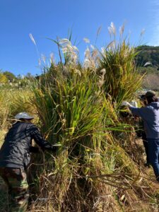 今回は刈ったススキを集めて山にしました!