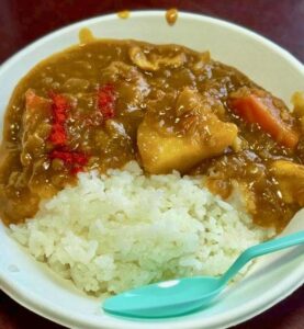 皆、寒空の下で来年の豊作を願って協力して作業しました!                   お昼には美味しいカレーが待ってますよ~                           隠し味にショウガを入れときました!気づきましたか?