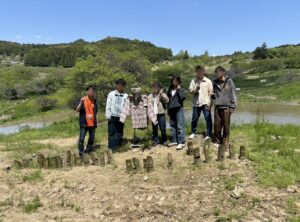 午前の活動ではまず、棚田の見学と紹介を行いました。青空の下に広がる緑の棚田がとても綺麗で、「来て良かった~」という声もたくさん聞こえてきました。棚田をバックにそれぞれのグループで写真も撮りました。